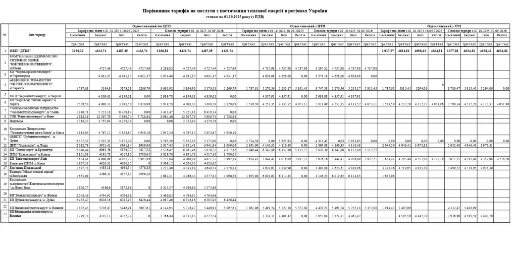 Порівняння тарифів в регіонах України